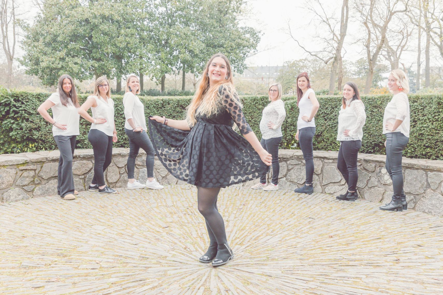 La tenue sera une des clés du shooting. En effet, imposer un thème et un dress code permettra d’unifier le groupe et réaliser les plus belles images de vous. Pour une jolie harmonie, il est préférable que les filles aient des tenues homogènes. Bien évidemment, la future mariée sortira du lot avec une tenue et/ou un accessoire différent (couleur, rayure, robe,…).